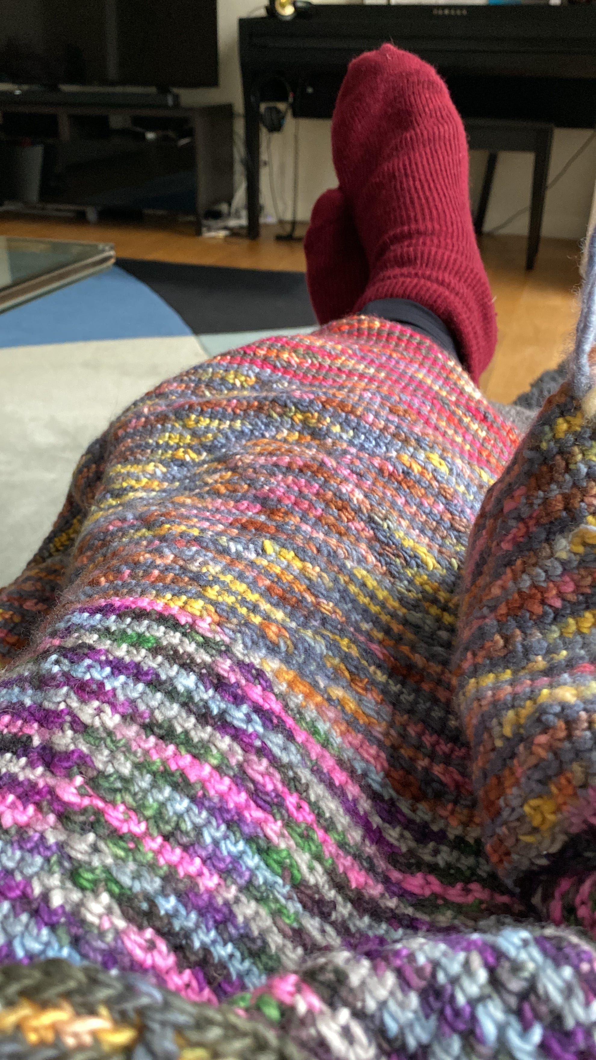 V Finally finish my mosaic crochet blanket. That’s been on the go since Hong Kong as well.