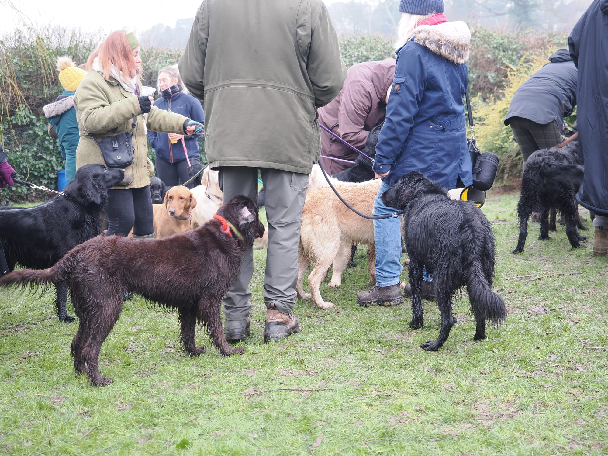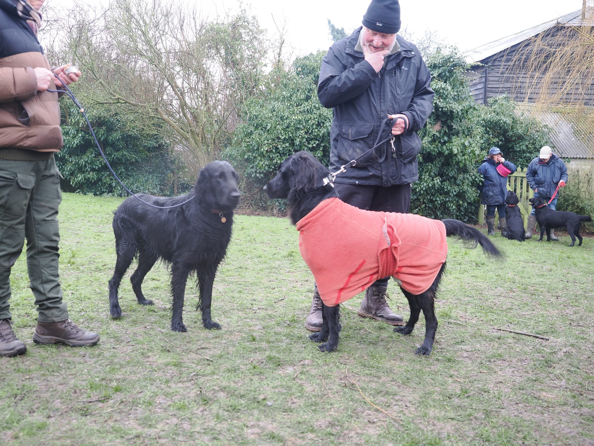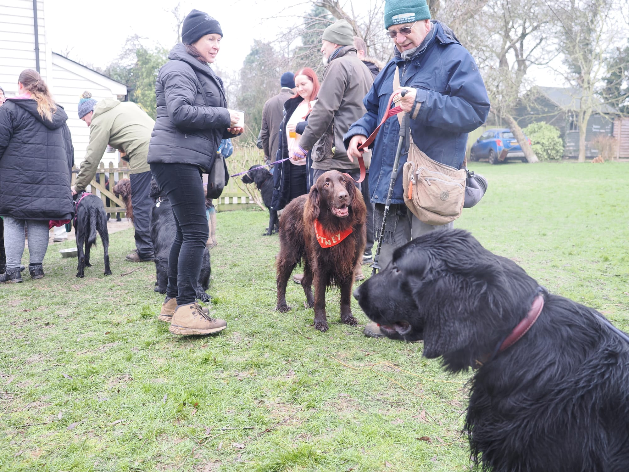 This is probably of limited interest to non-dog people and possibly still less to non-flattie people but over 40 flatcoated retrievers descended on a tiny Hertfordshire village on Sunday at the home of their breeder. We all went for walkies and had a lovely time. Most of these dogs are Fergus's extended family, including some from his litter. His grandma Sonja graced us with her company, but sadly left this life the following day.