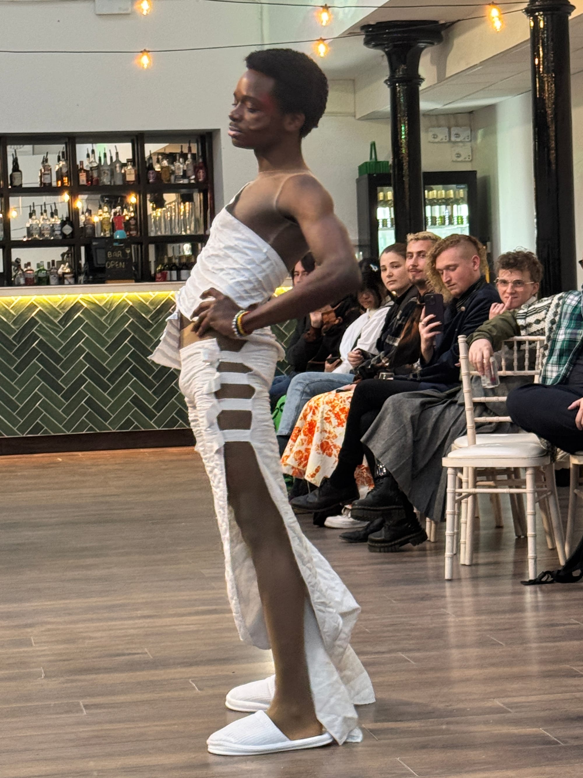 Eliza is all about being a voice of diversity in the world of fashion: her models are of all sizes; all ethnicities and all genders and they all gave up their time free to walk in her show, a sideways, eyebrows-raised look at the pursuit of beauty through artifice and the environmental impact of fast fashion and mindless over-consumption by people in the developed world. It's a lot, but she's a complex thinker.