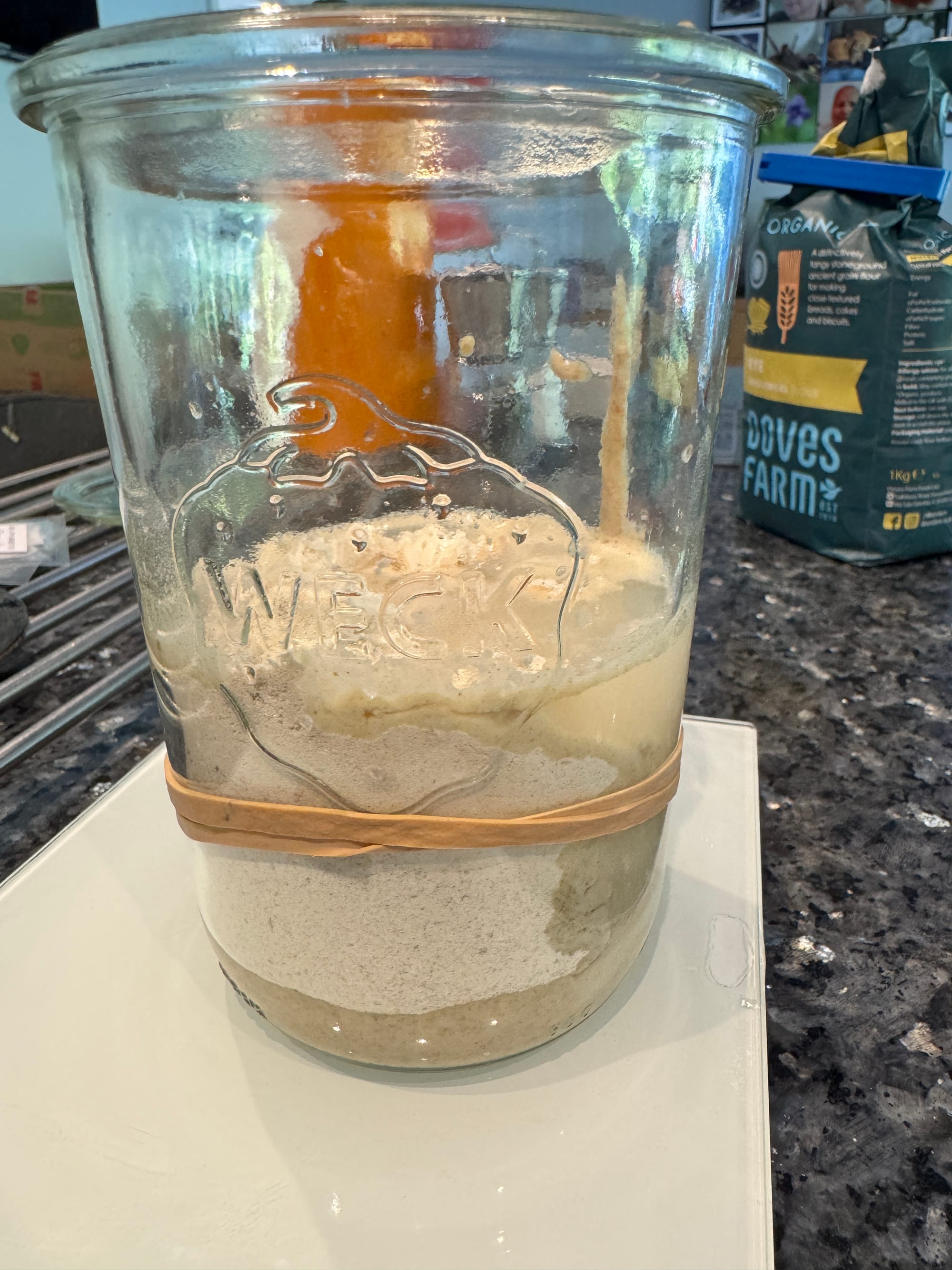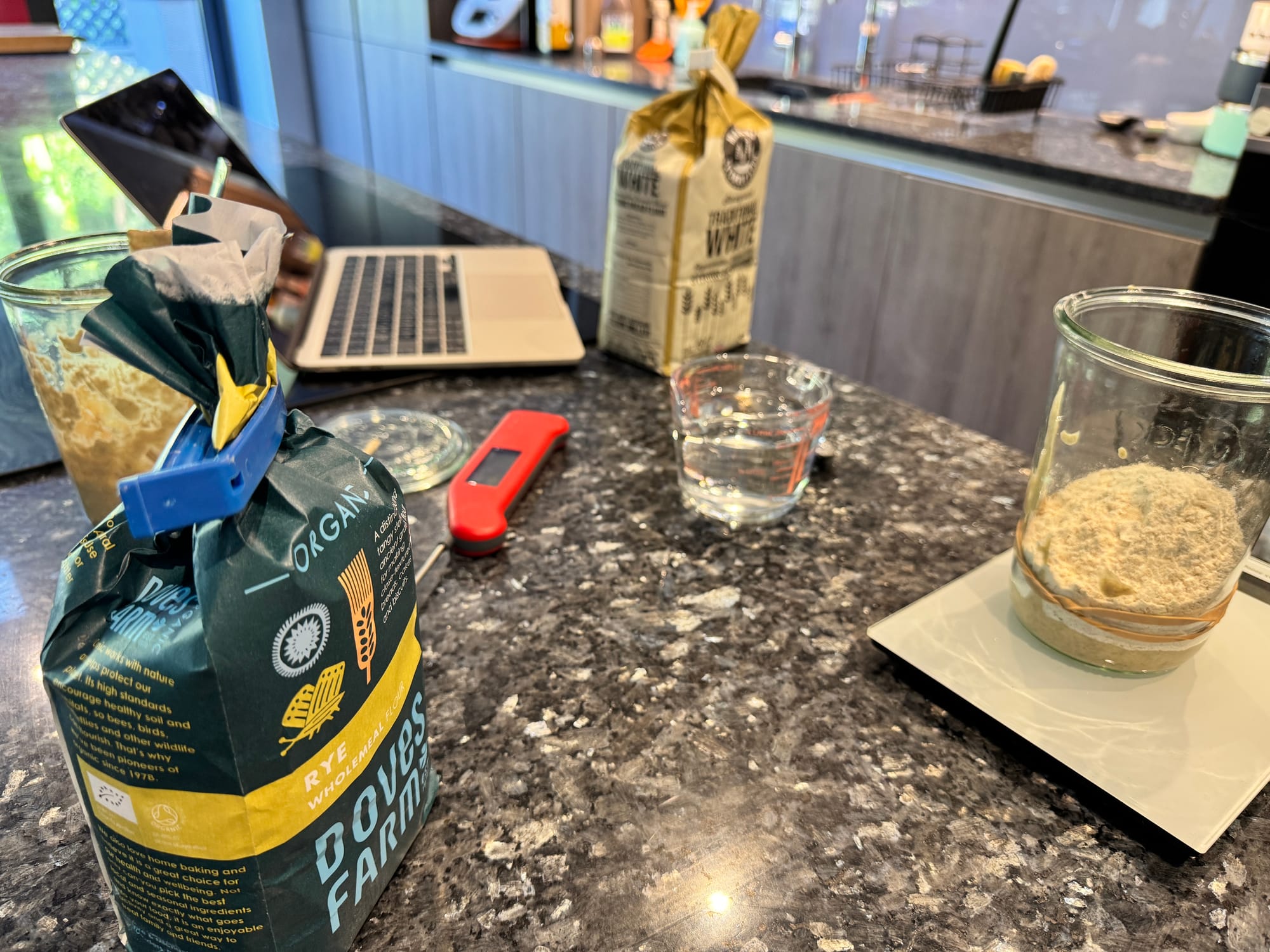 It's all very complicated, this way, and involves an initial rye-based starter, which you feed every 12 hours and keep at a constant temperature. There's quite a lot of discard waste which, in theory could be made into pancakes or added to cakes, if I made cakes anymore, but I'm not clear what the benefit of that would be.