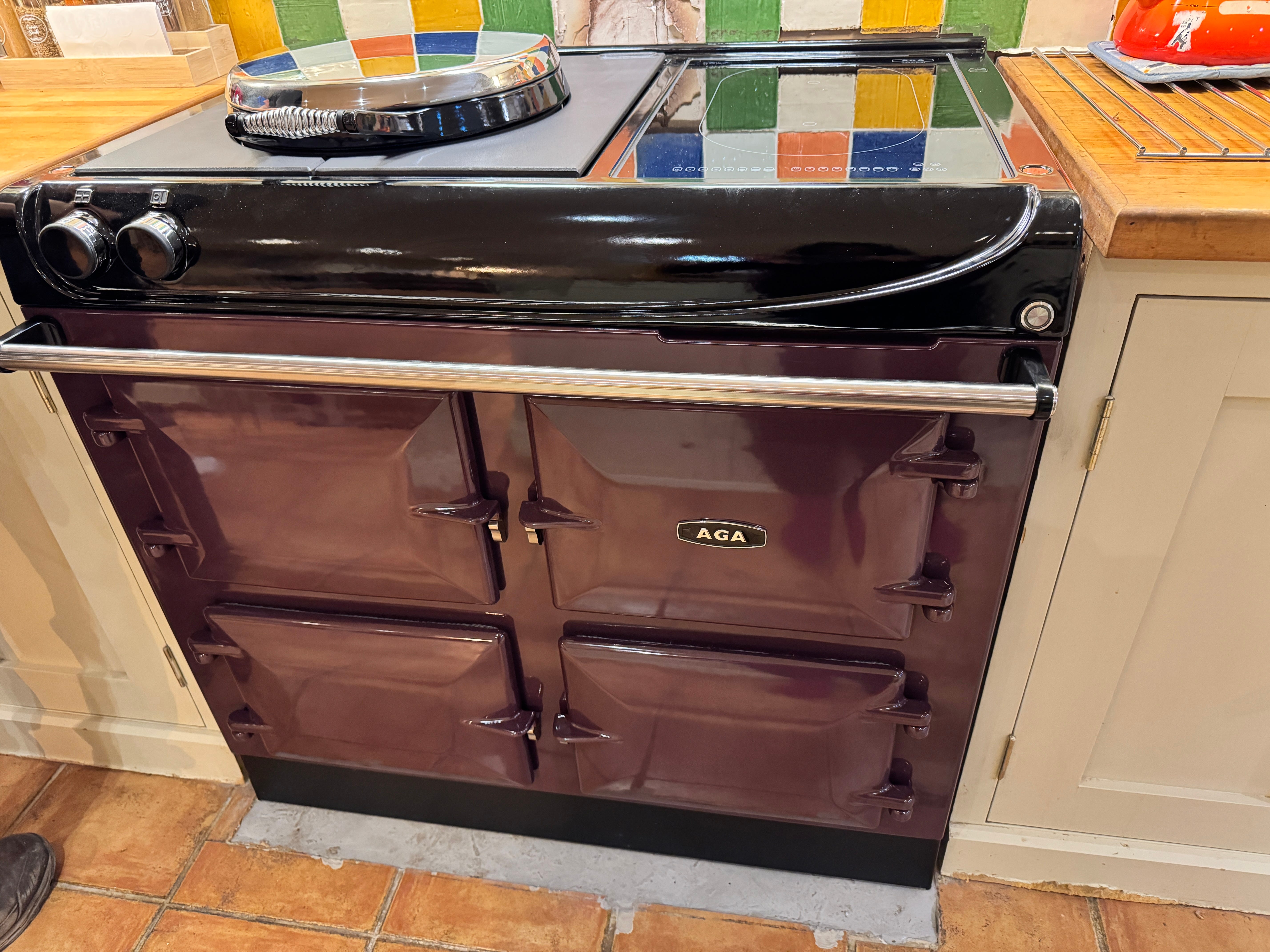 How to overcome my aversion to the reek of kerosene that greeted me whenever I opened the kitchen door? Or the constant refilling of costly heating oil from it having to be left on all winter? Well, I researched a cast iron Aga stove that could actually be switched off and on at will, with an induction hob for summer cooking and this week it was finally installed.