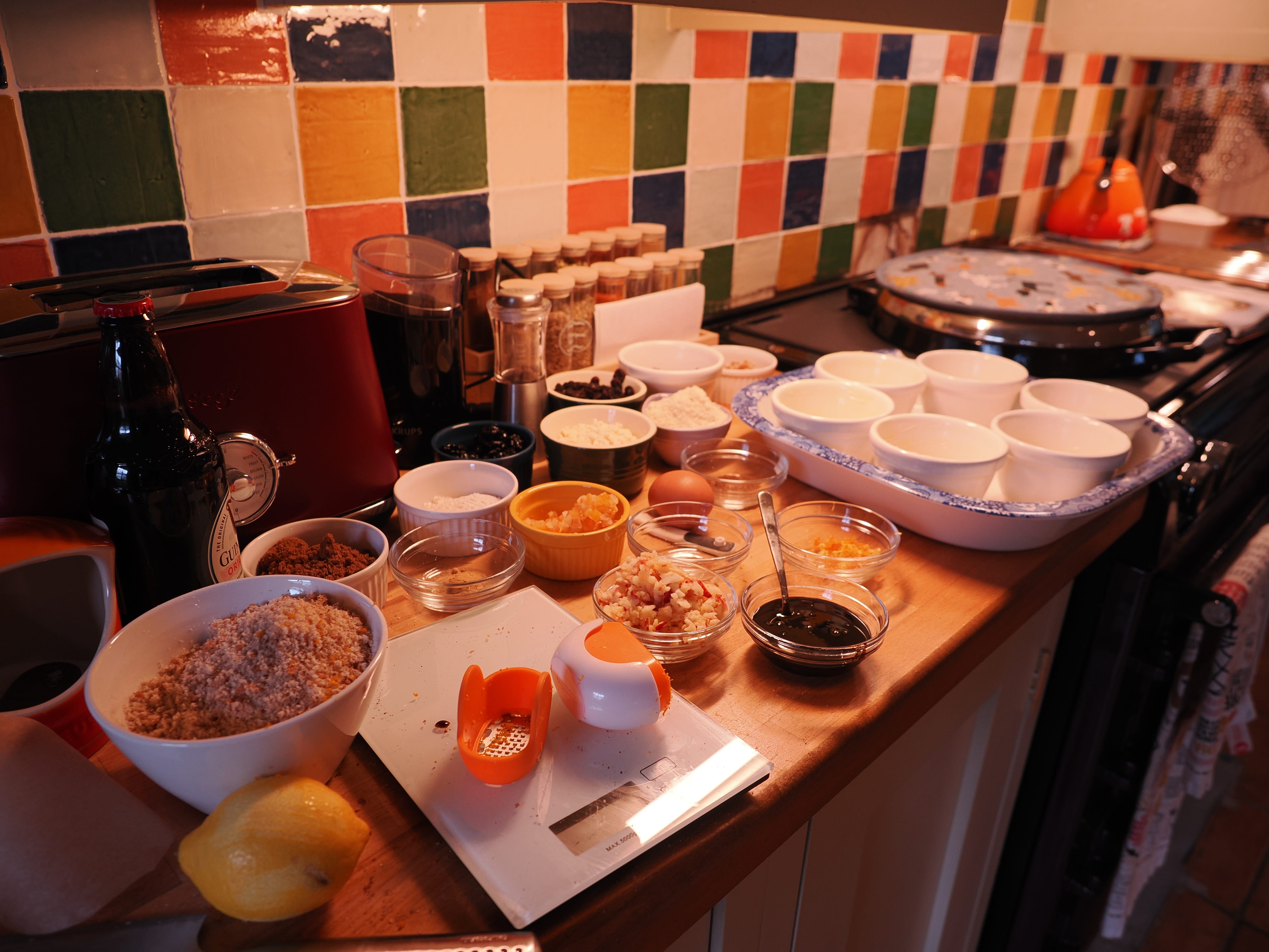 What did I make first? Individual puddings to Marcus Wareing’s recipe. I didn’t want to make a vast pudding that serves 16 when a scant three of us will actually eat it. Here is my mise en place.
