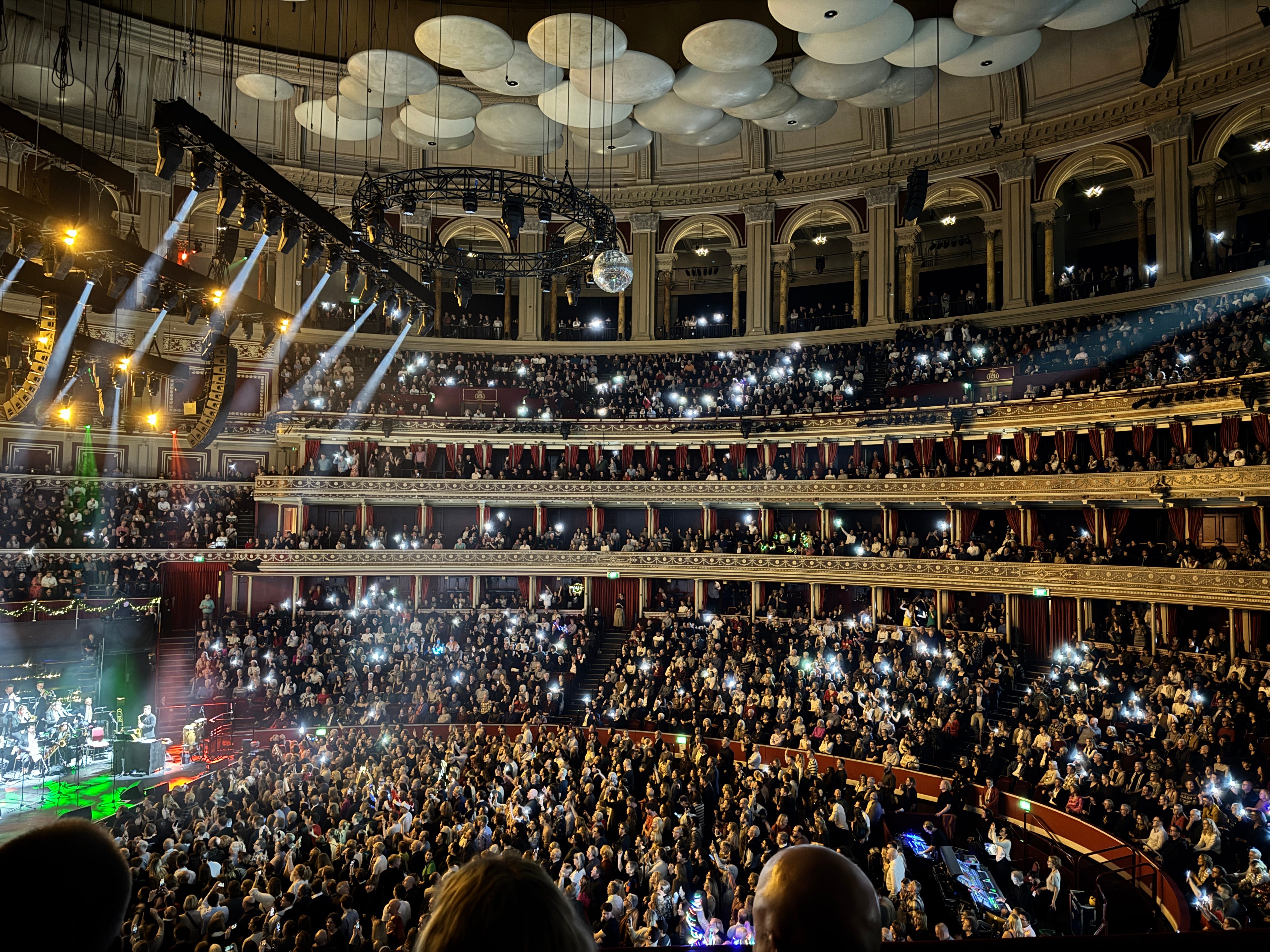 We had one of the RAH’s loggia boxes and arrived to a party in full swing, with one of the occupants doling out Champange to his five companions. It turned out in the end that at least some of them had only just met but that didn’t stop them getting literally roaring drunk together. They chatted and sang almost incessantly through the show, the volume become louder and more and more irritating, and let me tell you that their renditions of Mr Cullum’s songs did not surpass his.
