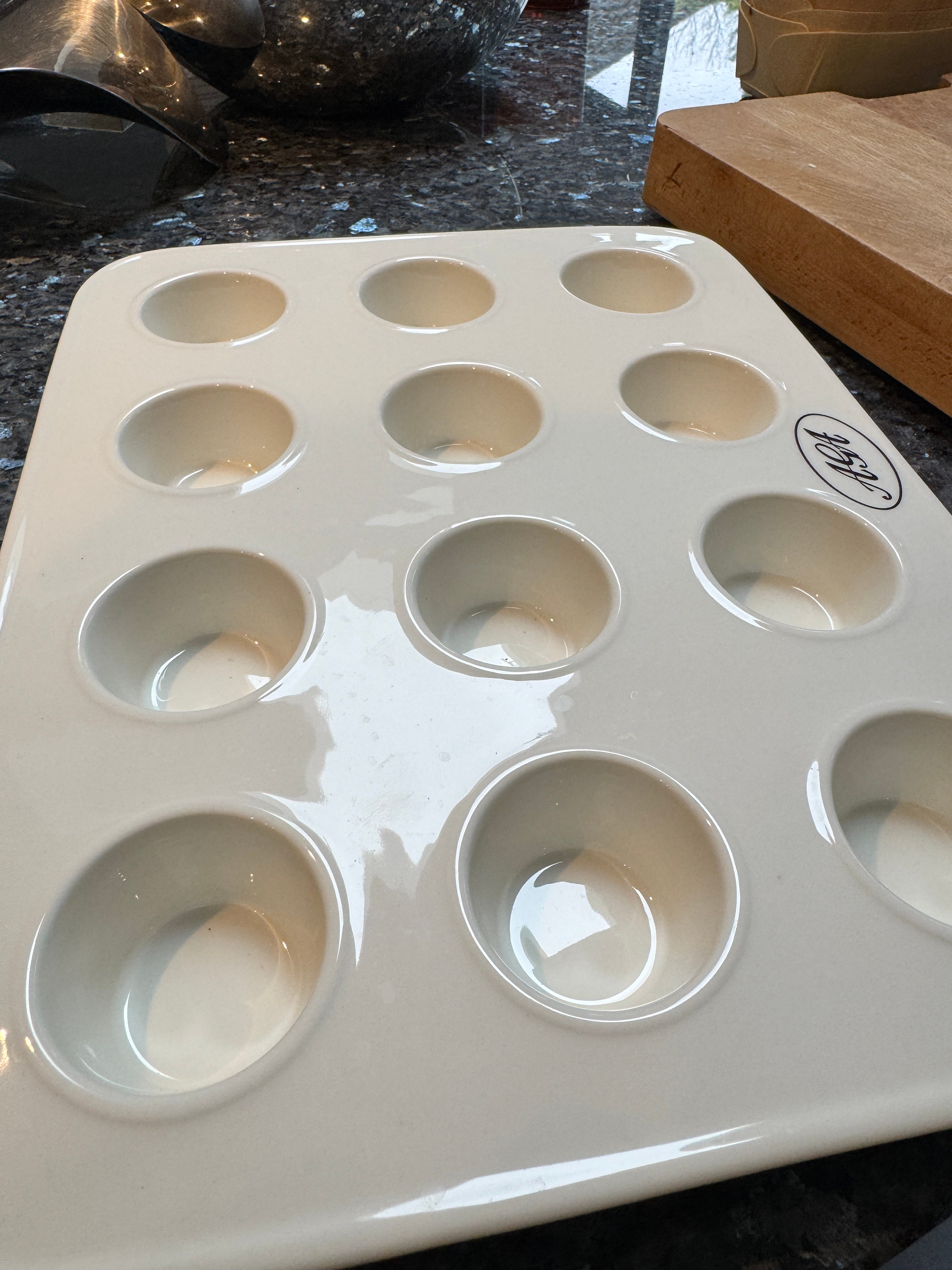 In this vein, this week’s Works for Me is a ceramic bun tin from the Aga Cookshop. I wish I’d known about these years ago. I have tried all sorts of bun tins in various metals, silicone, stainless steel, all sorts but my mince pies have always stuck, making me doubt my pastry-making skills. I suspect this also has something to do with my blind obedience to the exhortations of Mrs Warren, our Domestic Science teacher, who told us never to grease with pastry. I kept to that advice for almost half a century but I’m here to tell you that this is rubbish and a lie, and that buttering your ceramic tin well before putting the little crimped discs into the apertures makes them turn out like a dream.