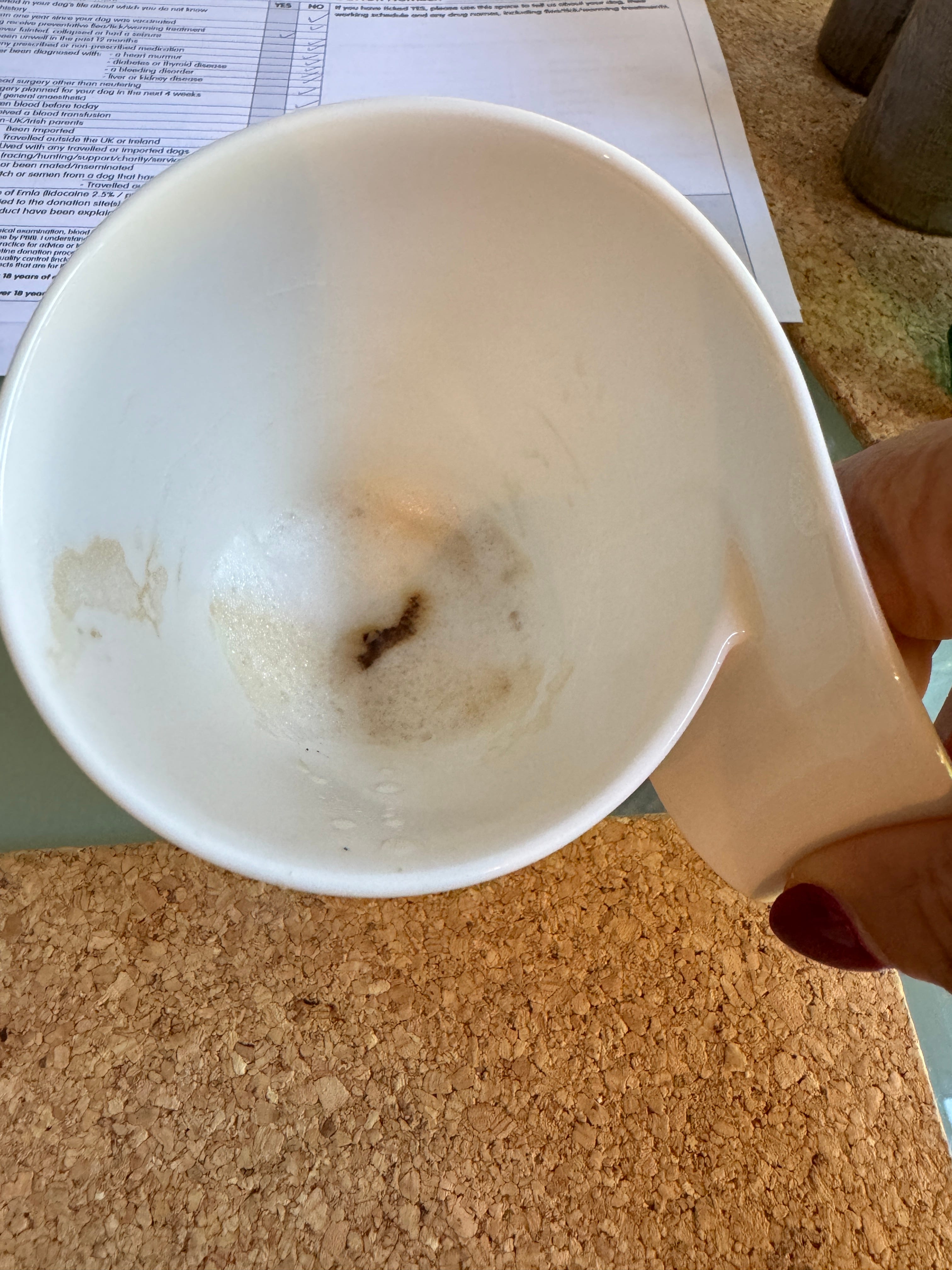 The first cup of breakfast coffee. Hot, rich and fragrantly inspiring. As you know, despite having tried all manner of coffee machines, my preferred coffee is always made in a stovetop Mokapot. Waitrose Edenbridge had run out of my normal Illy in a tin last week and it was an emergency so I bought Lavazza Gold, which is admittedly less wasteful but still very delicious. I use a milkfrother to make a Latte or a Cappucino. (I often use enough milk that Fergus gets to have a puppachino). That coffee moment is just like the ones on the old coffee ads but for real. This morning I reached for my mug only to find that my coffee had all been drunk. Woe